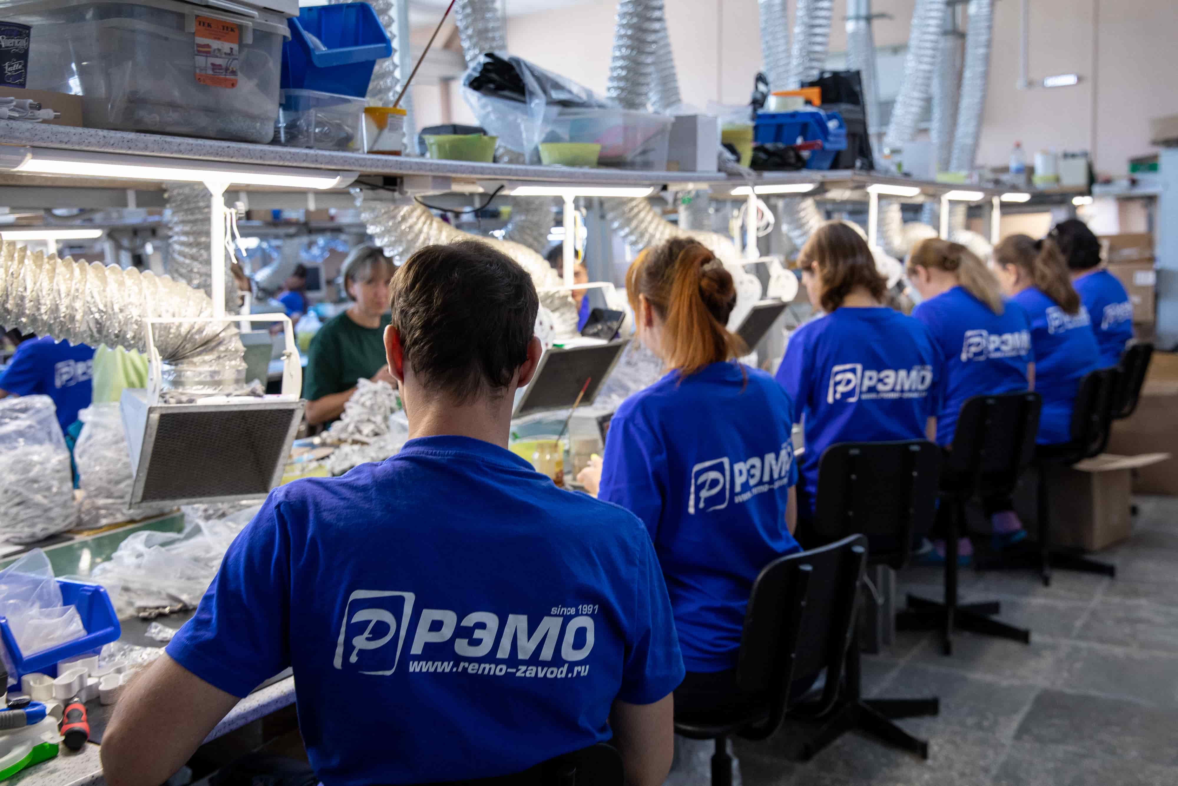 Наших мощностей хватает, чтобы производить сотни и, даже, тысячи антенн в сутки. На фотографиях ниже — только часть команды завода «РЭМО».